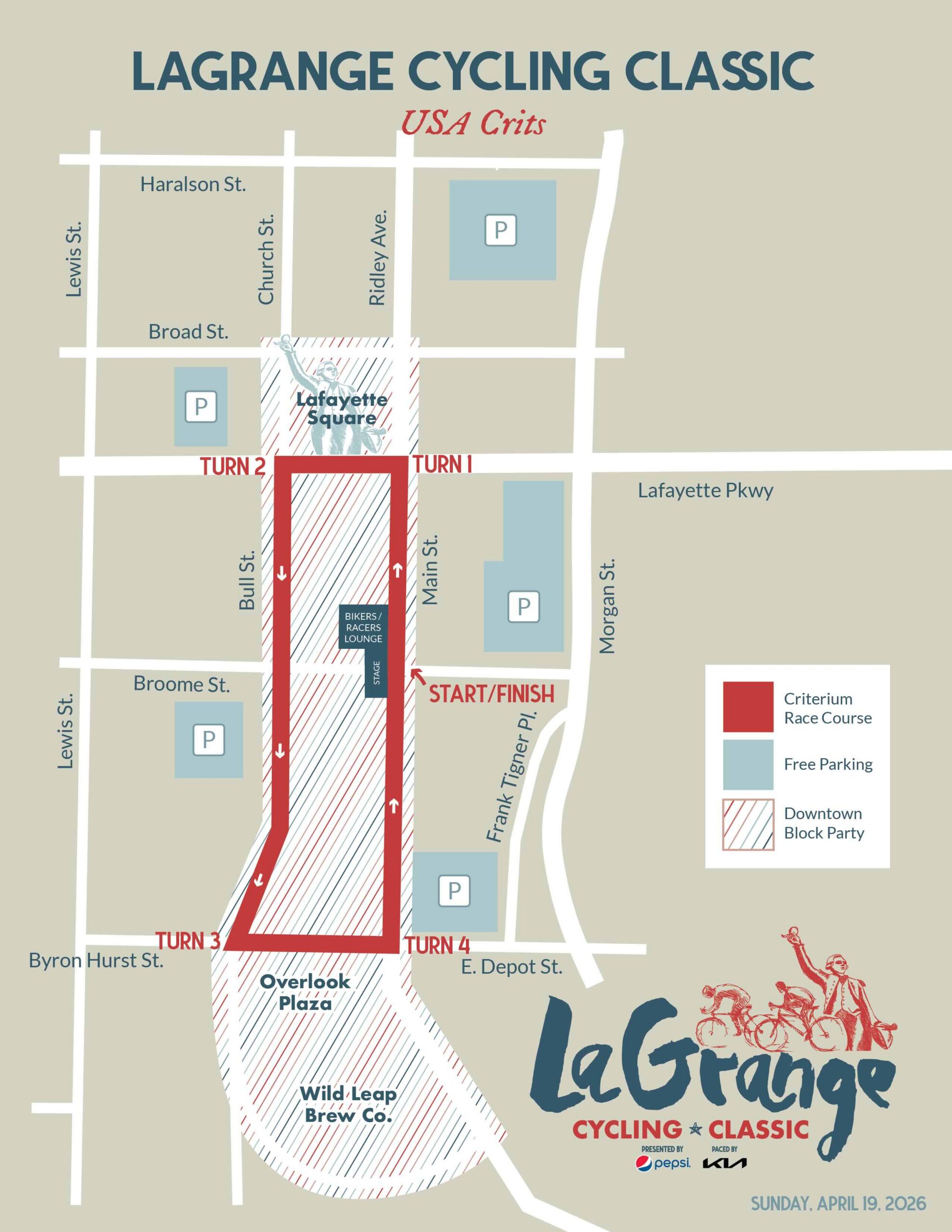The high-speed, multi-lap cycling race will take place on the historic streets of downtown LaGrange, Georgia in an enthusiastic block party. Hundreds of cyclists will scorch through the closed streets of Bull Street, Main Street, and the blocks connecting. The closed-circuit course will supply constant, unmatched entertainment—for free.
